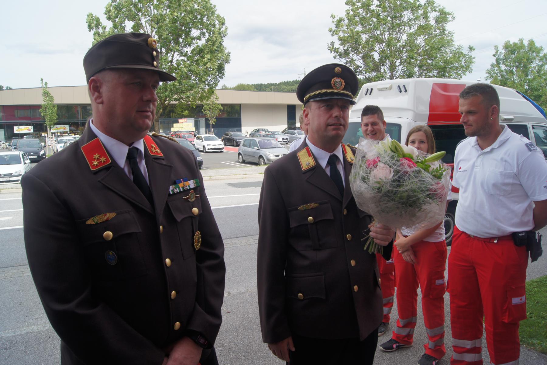 Nachdem wir das Schwibbogen stellen letzten Freitag erfolgreich geschafft hatten, stand jetzt das große Ereignis bevor. Eine große Abordnung der Feuerwehr, des Abschnitts und des Roten Kreuzes standen Spalier.