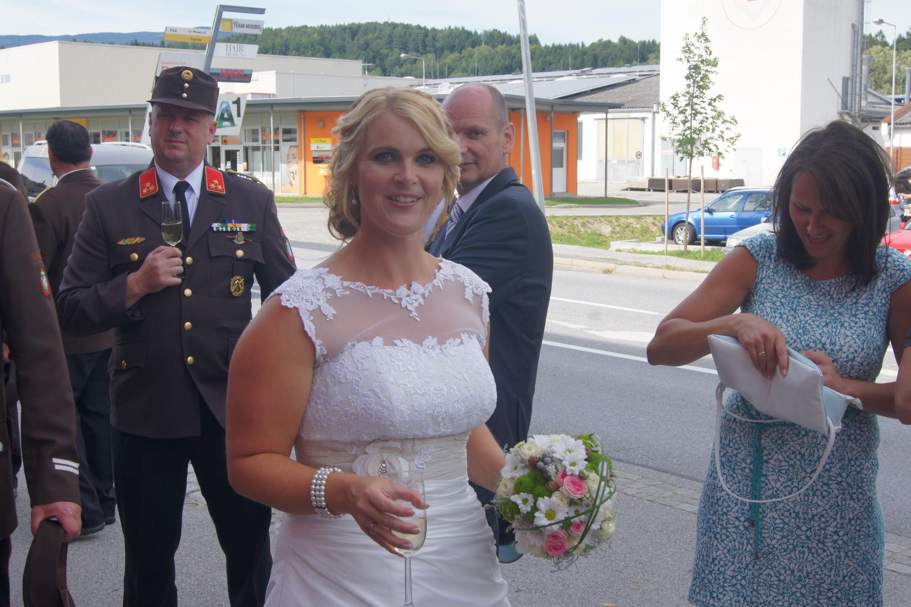 Im Anschluss lud das Brautpaar zu Mehlspeise und kühlen Getränken ins Rüsthaus, bevor sich am Abend die Hochzeitsgesellschaft weiter zur Hochzeitstafel aufmachte.